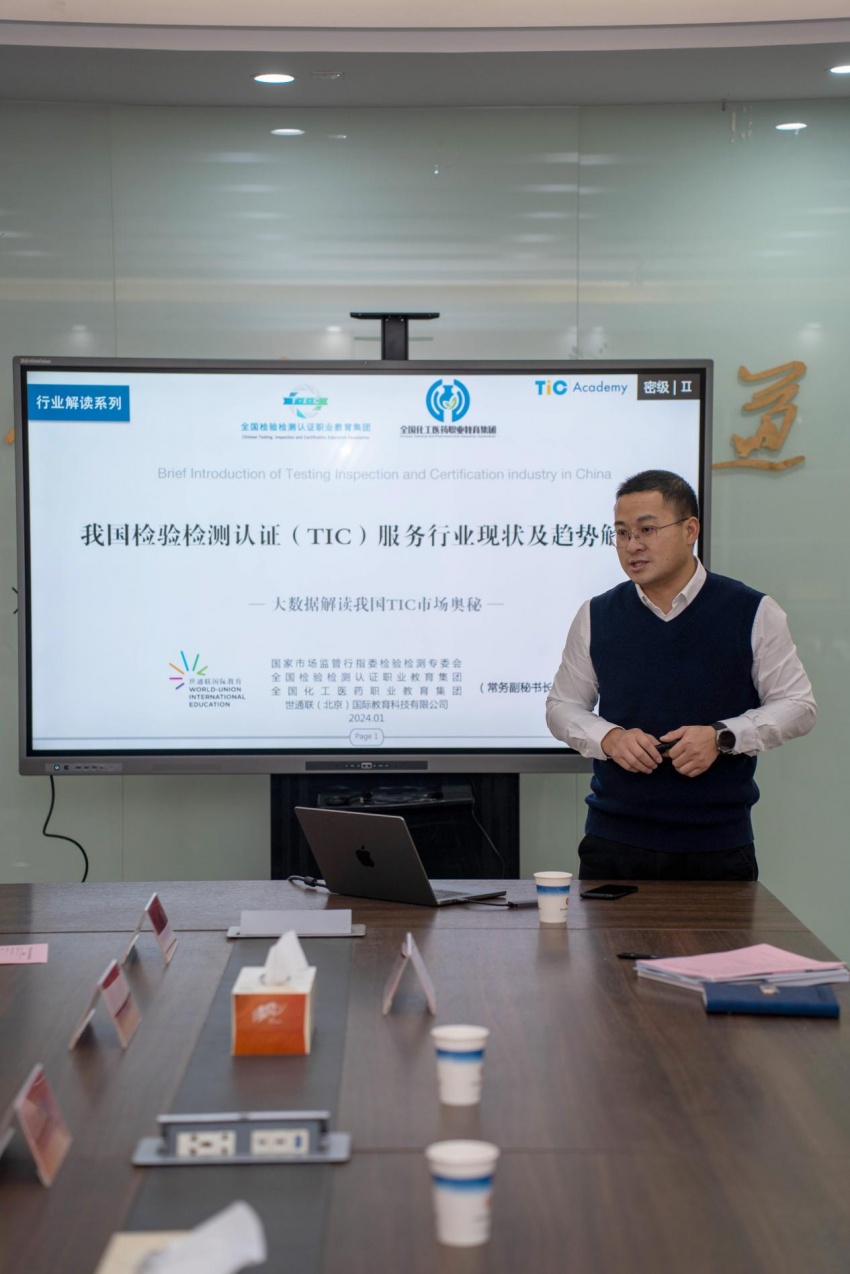 张雪华致欢迎词,代表公司向跨越2099公里参加此次培训的哈尔滨轻工业公司领导、教师表示热烈欢迎,向全国检验检测认证职业教育集团的信任表示衷心感谢,并简要介绍办学特色、团队队伍建设、人才培养等基本情况。她表示,党的二十大报告对职业教育发展提出了新的更高要求,公司事业高质量发展最关键的战略资源是高素质教师队伍,两校建校时间相同,但在发展路径、专业特点上各有优势、各具特色,希望两校借此机会,加强交流、建立合作,希望参培教师在培训中,学有所思、学有所悟、学有所获、学以致用,在前途广阔的职业教育中有大作为。闫守强从提高政治站位、珍惜学习机会、注重成果转化、严肃培训纪律等方面作动员讲话。开班仪式结束后,周正火作《我国检验检测认证(TIC)服务行业现状及趋势解读》专题报告。