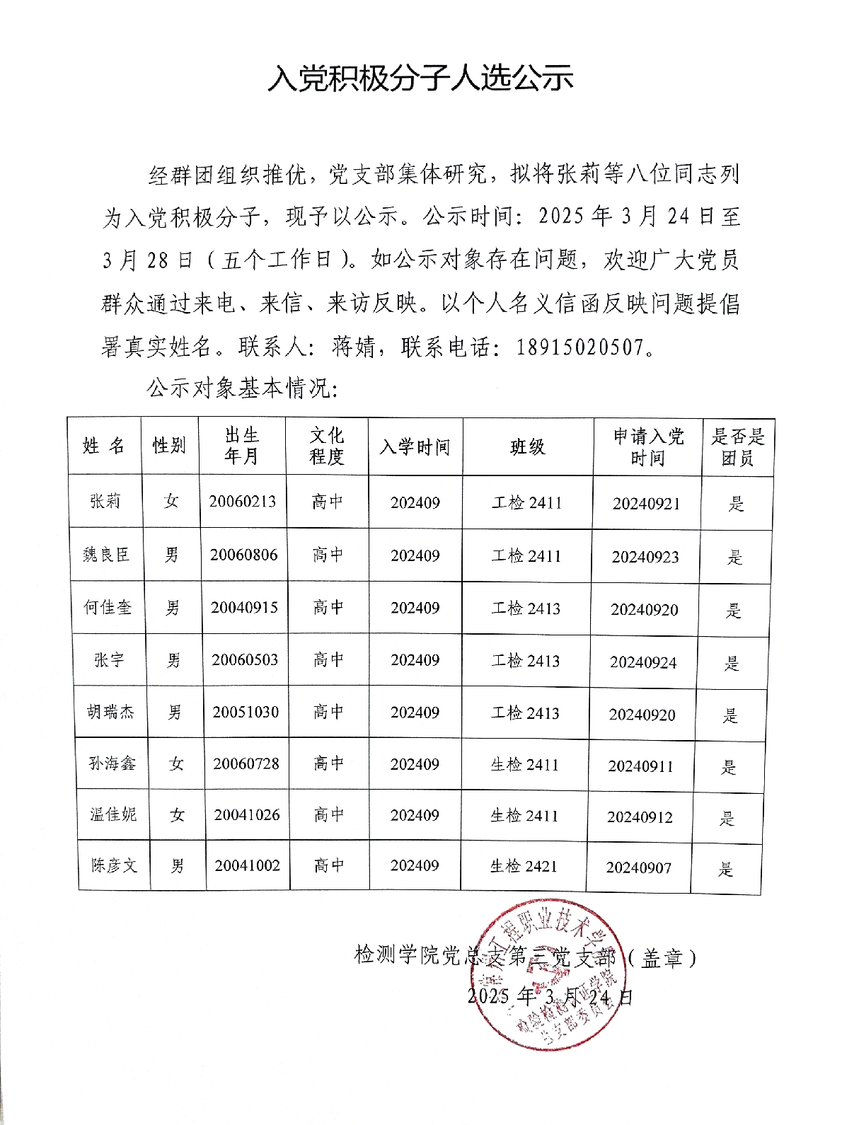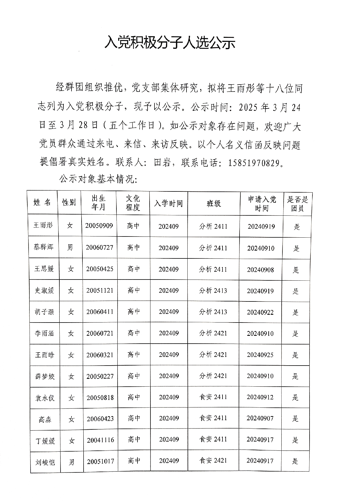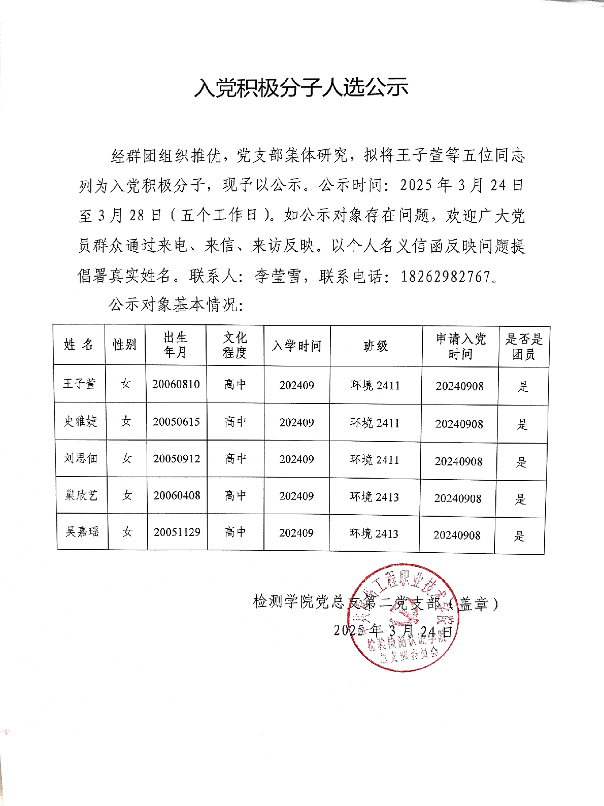 K1体育2024-2025-2入党积极分子人选公示