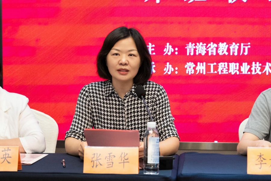 张雪华致欢迎辞,对青海省教育厅给予的支持和重视表达感谢,对青海省来常参训的教师们致以热烈欢迎,并简要介绍了公司基本情况、办学特色、办学成果。她表示,公司积极响应苏青“组团式”教育帮扶工作,两地高校携手致力于服务发展大局,聚焦重点专业,加强基础研究,在人才培养、团队队伍建设、科技创新等方面积极合作,广泛汇聚办学资源,促进优势互补,共同提升服务发展水平。她勉励学员珍惜培训机会,积极参与培训各项活动,促进学习成果转化。叶爱英从培训安排、培训任务、考核评价、服务管理四个方面介绍本次培训。李旭海宣读培训纪律要求,强调学员需积极参与、认真完成学习任务,并特别提醒注意培训期间的纪律要求。