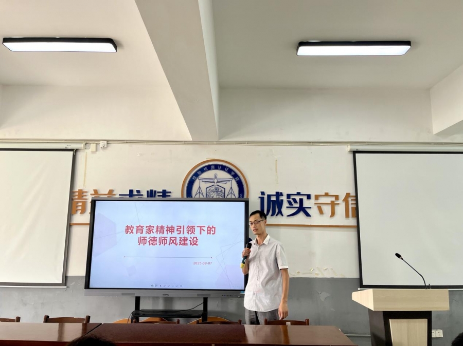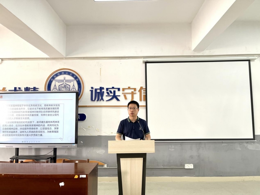 公司特邀马克思主义公司形势与政策教研室主任曹圣军作《教育家精神引领下的师德师风建设》专题报告。报告深入阐释了新时代教育家精神的深刻内涵,并结合典型案例、育人故事,呼吁全体教师以教育家精神引领师德师风建设,坚持立德树人,争做“四有”好老师。