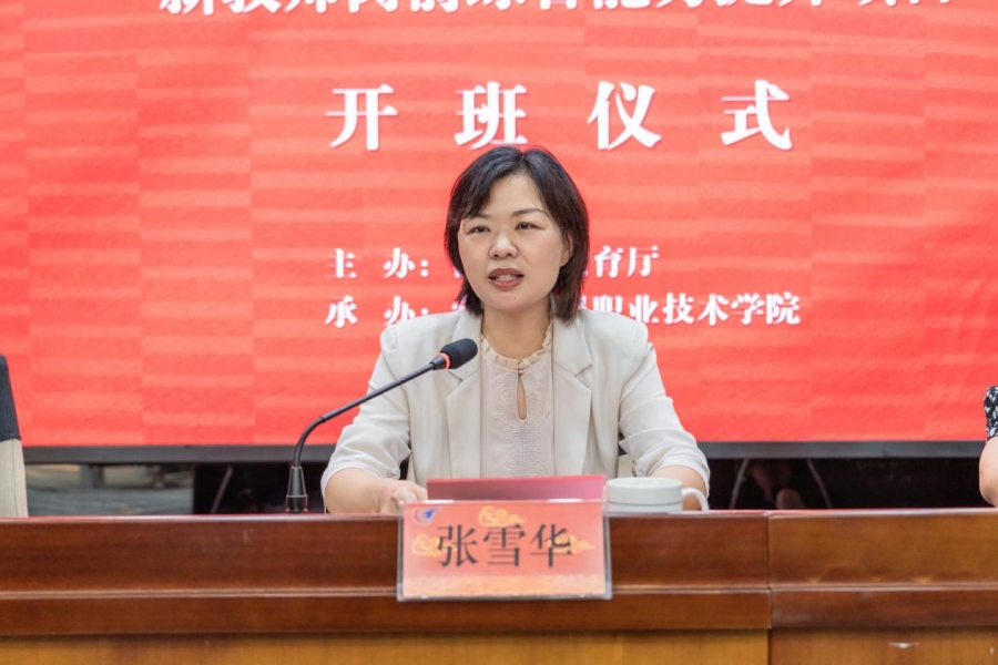 张雪华致欢迎辞,介绍公司办学历史、专业特色、人才培养及社会培训优势成效,强调公司将全力做好培训组织与服务保障,勉励学员坚定从教初心,锤炼教学与专业本领,实现从“站上讲台”到“站稳讲台”“深耕教学”的跨越,成长为优秀“双师型”教师。